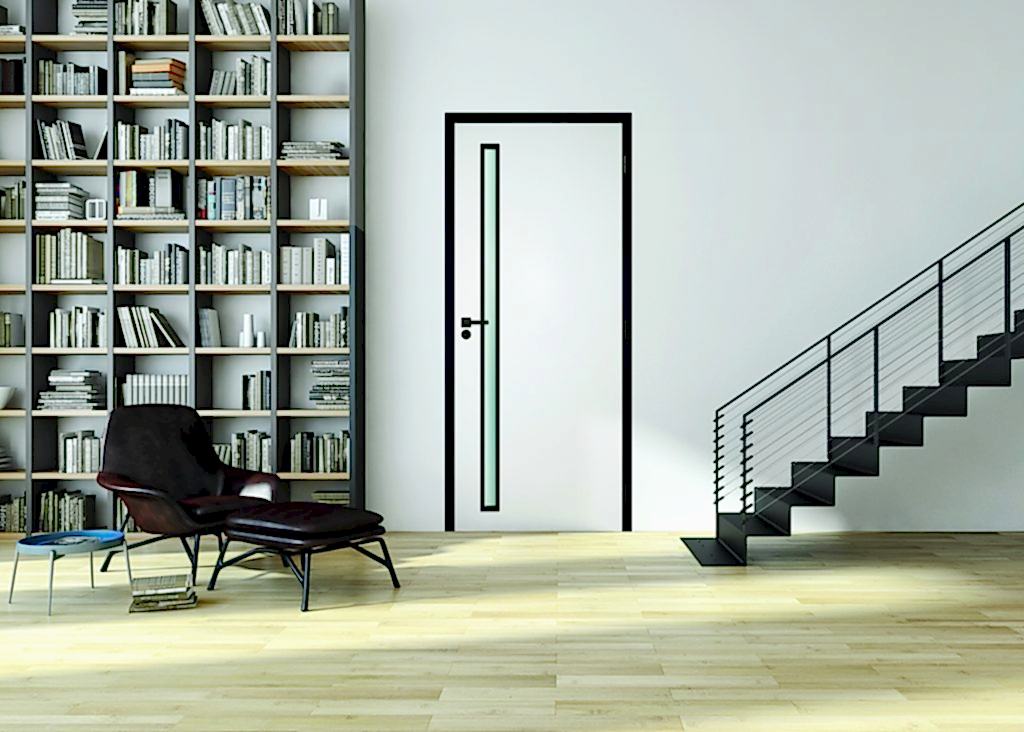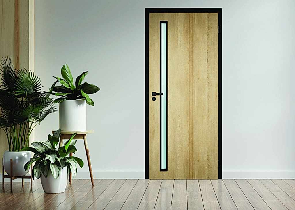 Beltéri ajtóink megrendelhetők modern, stílusos fekete kiegészítő elemekkel.
