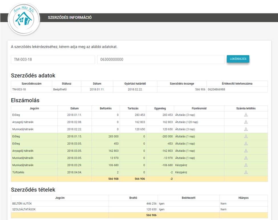 Fontosnak tartjuk, hogy minden megrendelőnk a lehető legegyszerűbben tudjon tájékozódni megrendelésének aktuális állapotáról. Ezért elkészítettük online megrendelés lekérdező felületünket, mely a megrendelesek.aronhaz.hu címen érhető el.